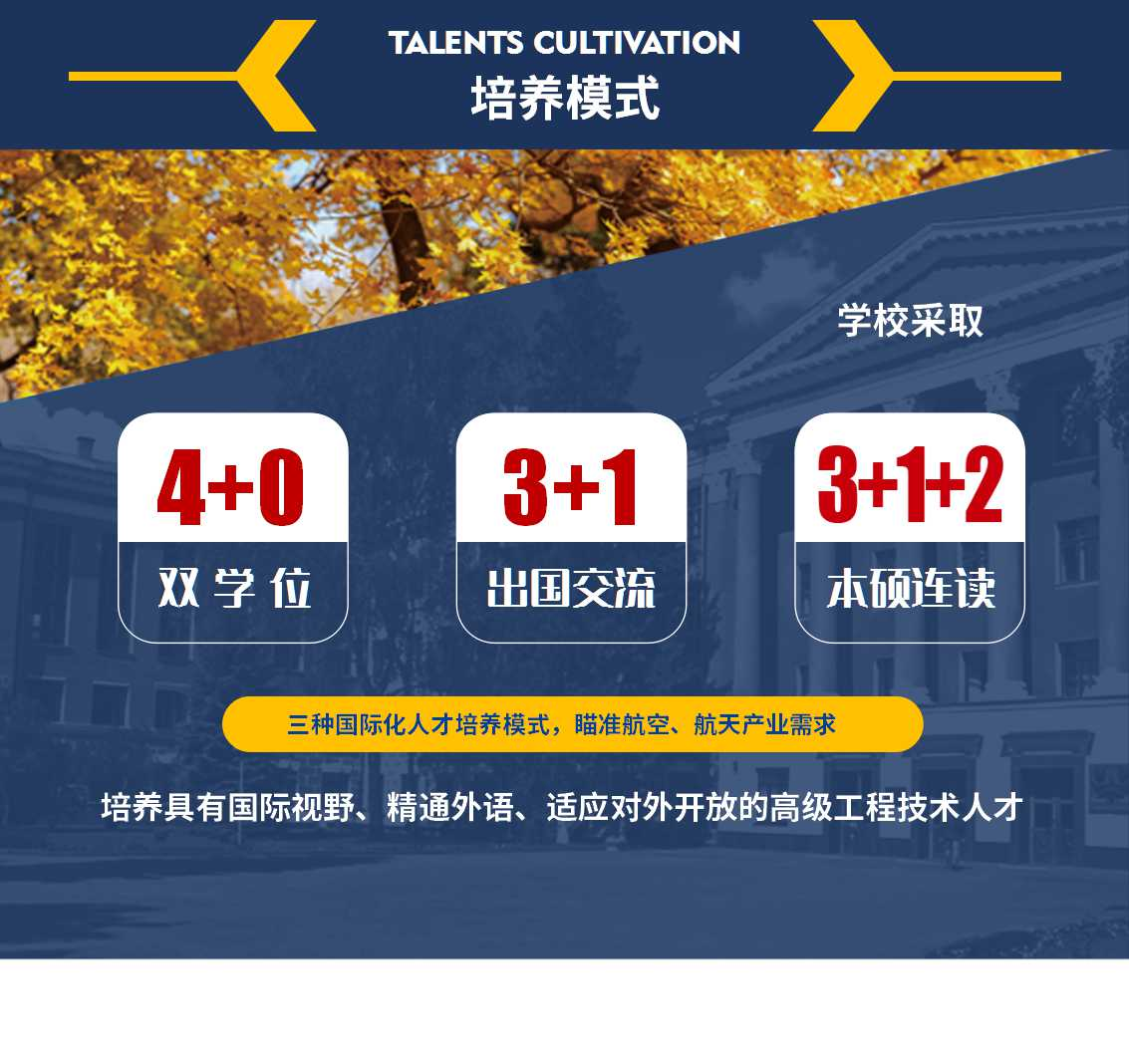 课程体系特色鲜明 学院各专业核心课程均由沈航与外方专业教学团队联合制定。通过最大化整合双方优质教育资源,融合外方先进的教育思想、教学资源,以OBE教育理念为导向,打造航空航天特色鲜明的、适应于国内学生先进的教学方法及科学的国际化课程体系。