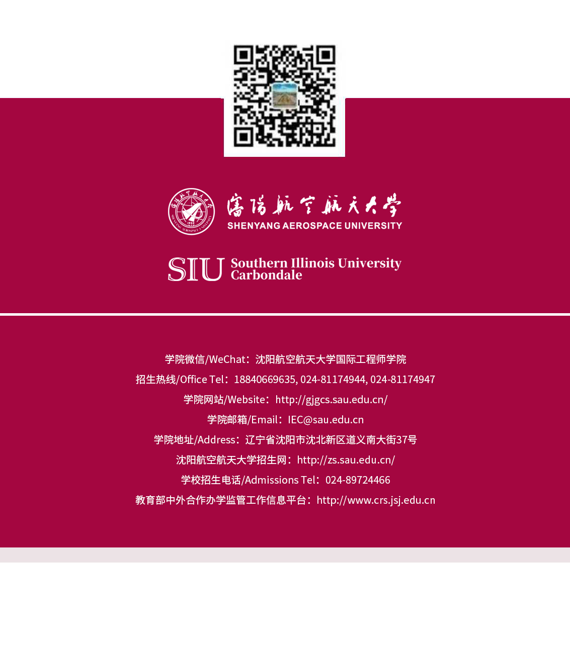 yl88858永利中国与美国南伊利诺伊大学卡本代尔分校合作举办飞行器动力工程专业本科教育项目,于2018年经国家教育部批准(办学许可证编号:MOE2US2A20181914N),2019年正式招生。办学地点为yl88858永利中国(招生代码*)。