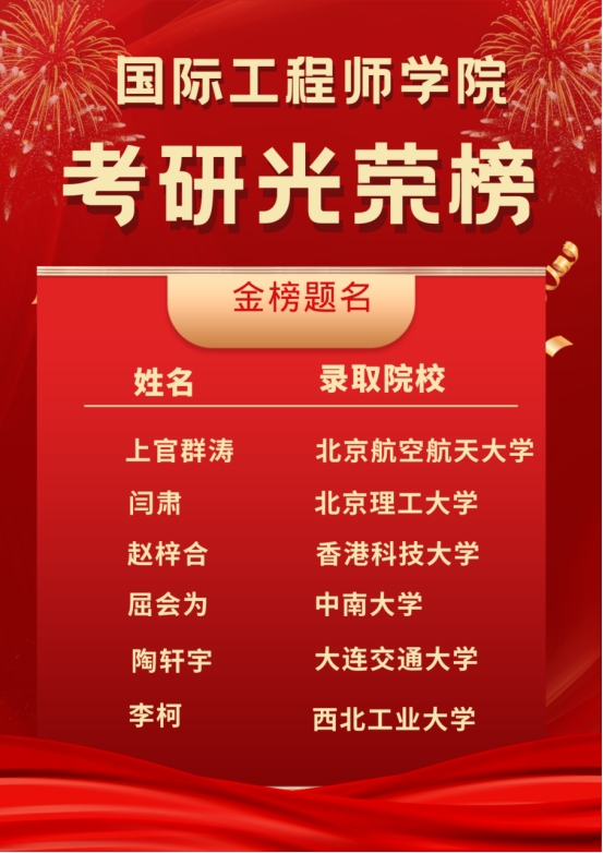 喜报频传如春水,佳音相继似花开!2024年全国硕士研究生招录工作落下帷幕,我院学子创造辉煌!多名学生被清华大学、北京航空航天大学、香港科技大学、西北工业大学、华南理工大学、北京理工大学、中南大学、东北大学等国内知名高校录取。