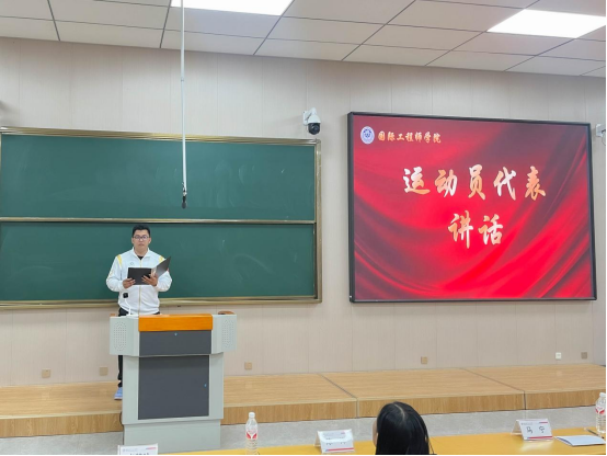 国际工程师学院直属党支部书记兼副院长马宁、副书记尹大伟、组织员陈洋、辅导员李梦晗出席会议。2022级、2023级运动员及全体2023级学生参加此次大会。会议由李梦晗主持。