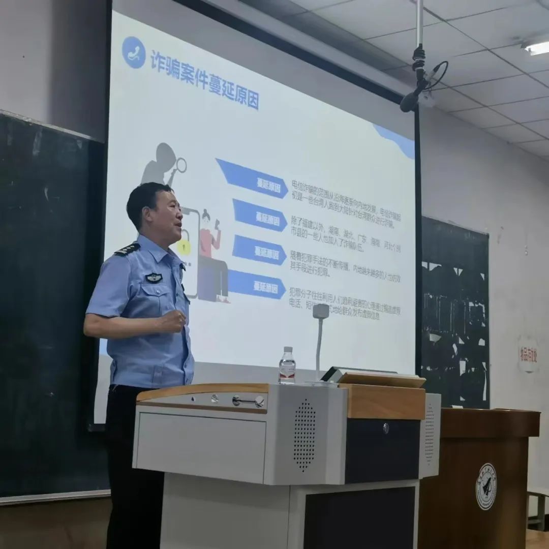 为有效预防和遏制电信诈骗案件的发生,提高学生自觉防范电信诈骗意识,从而避免重大财产损失,国际工程师学院于6月14日下午,特邀请正良派出所二级警长冯俊博为学生们做预防电信诈骗的专题讲座。参加本次讲座的有国际工程师学院辅导员李丹、陈洋和李梦晗以及国际工程师学院全体在校生。