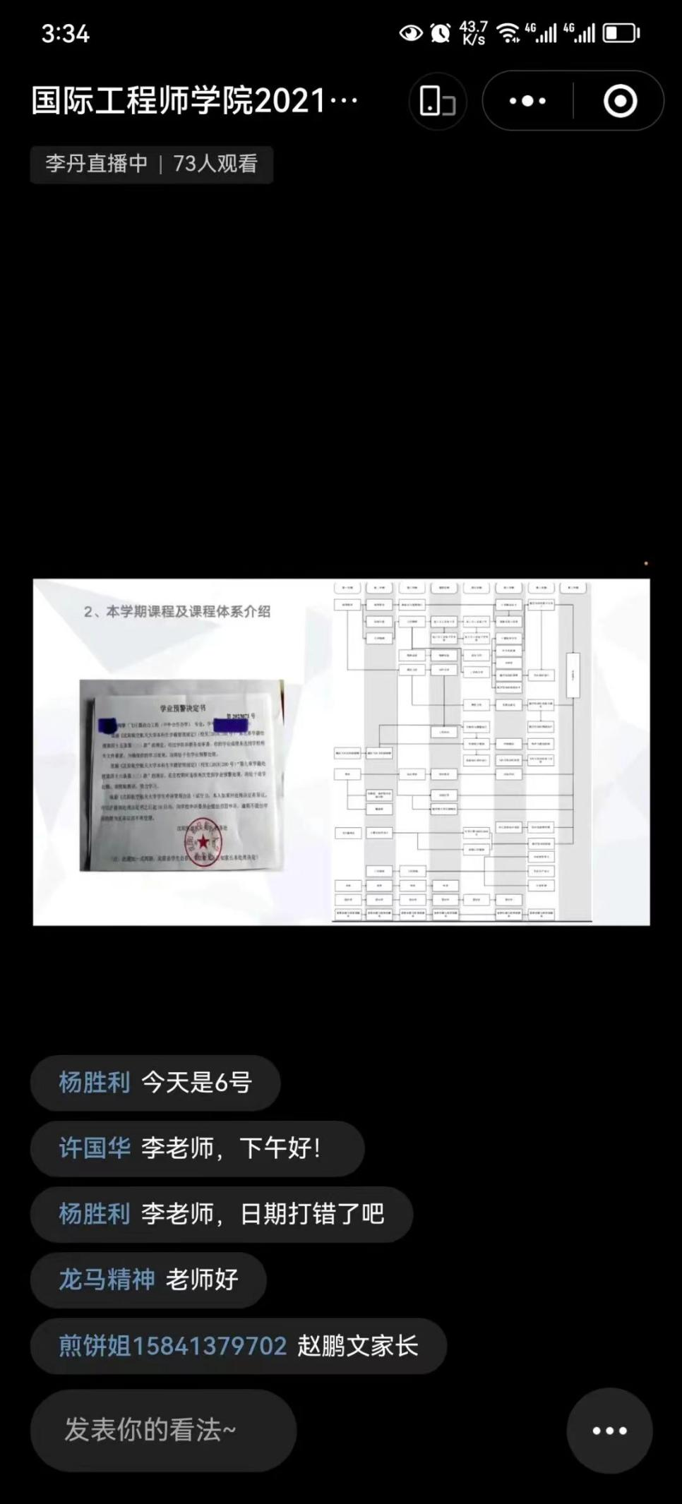 会议分别由辅导办三名辅导员老师在线上召开,辅导员们分别围绕学风建设工作、学生日常管理、大学生违纪处理规定、疫情防控最新政策以及各年级优秀学生案例等近期学院的几项重点工作展开介绍。学院为了加强沟通,特设立家长联络电话并告知家长,欢迎家长提出意见和建议。