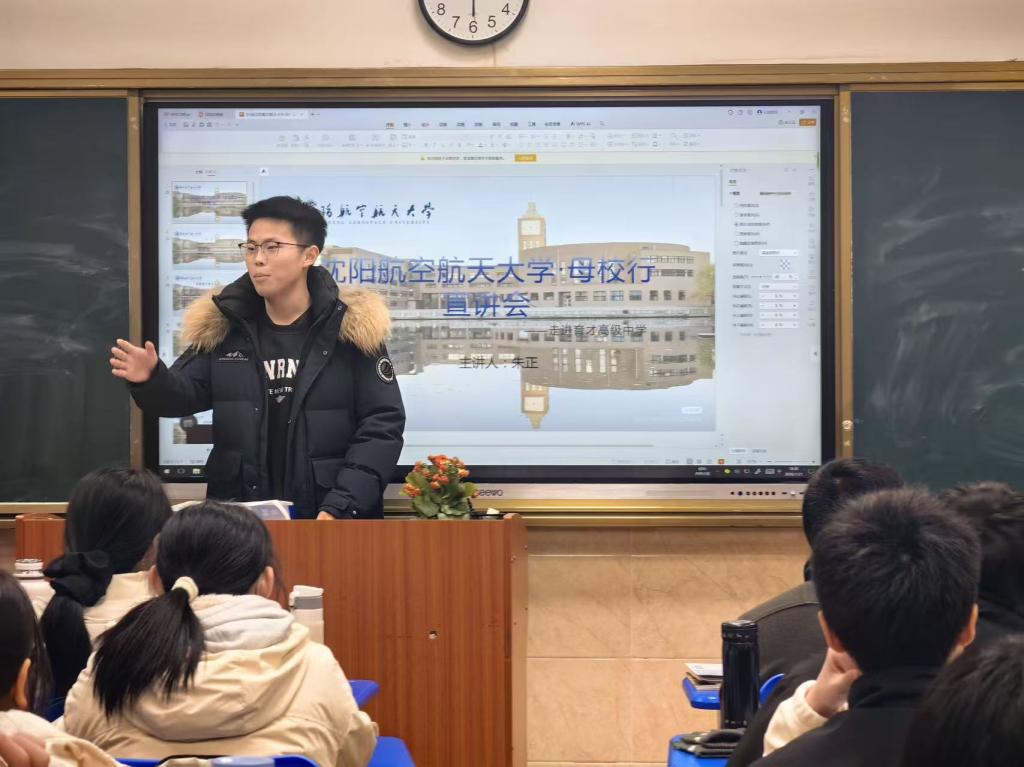 “辽宁省铁岭市开原市高级中学小分队”以沈航学子的身份回到辽宁省铁岭市开原市高级中学,团队成员向学弟学妹们分享了大学的学习生活、专业特色与成长经历,解答了关于备考、志愿填报和大学生活的疑惑,同时介绍了我校悠久的历史与文化底蕴,爱校荣校,充分体现沈航学子的精神面貌。