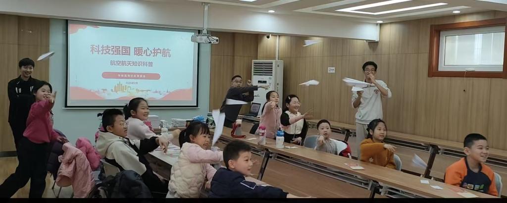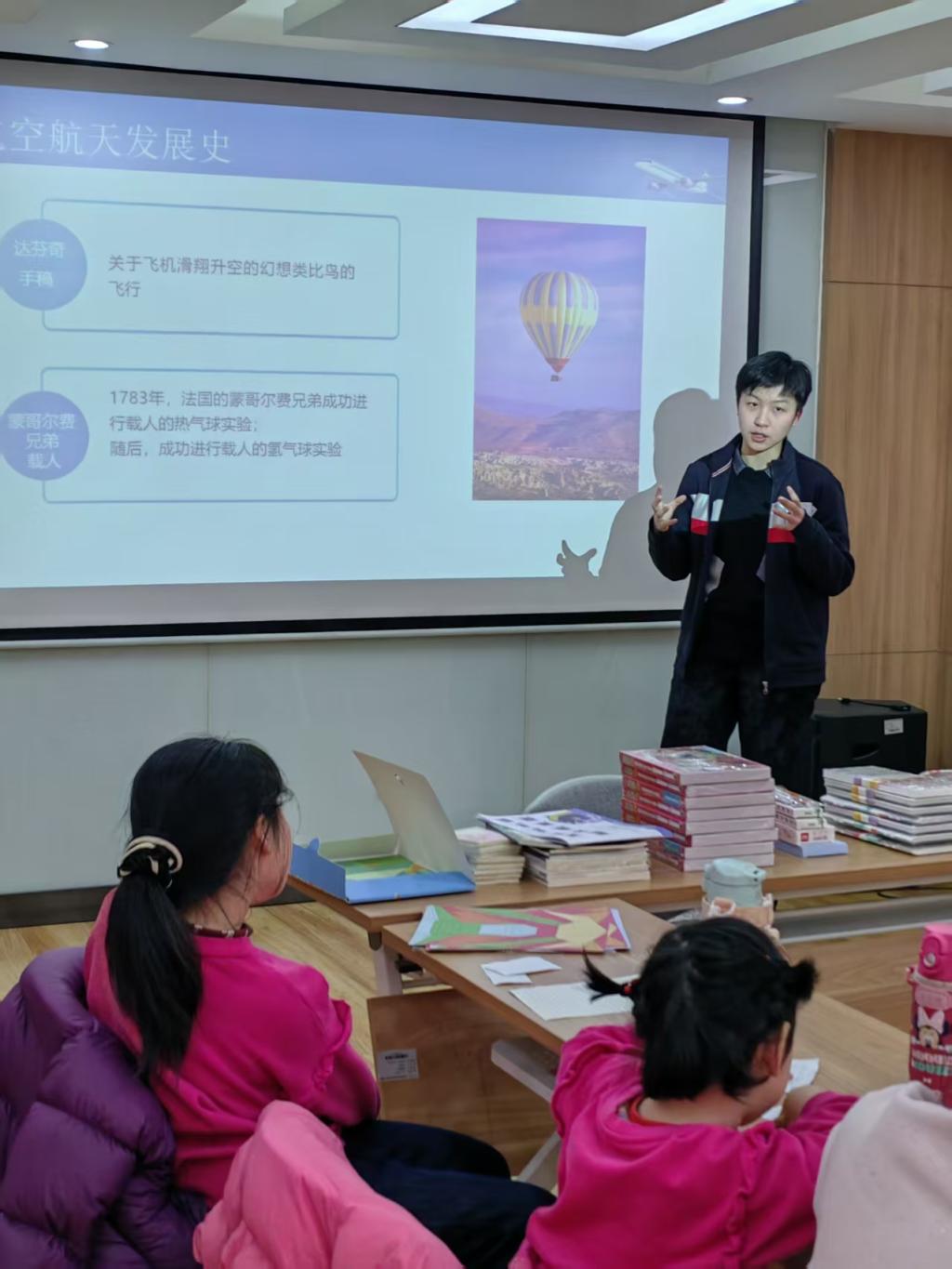 “雏鹰启航队”为弘扬航空航天精神、普及科学知识、丰富社区青少年课余生活,来到了山东省济南市华能嘉苑社区居民委员会,开展以“科技强国,暖心护航”为主题的航空航天知识普及活动。活动现场,团队成员以通俗易懂的语言、生动有趣的形式,为孩子们讲解航空航天基础知识。从飞机的构造与飞行原理,到火箭、卫星、空间站的发展历程;从中国航空航天事业的重大成就,到航天员的工作与生活,内容兼具知识性与趣味性。有效激发了孩子们的好奇心与探索欲。